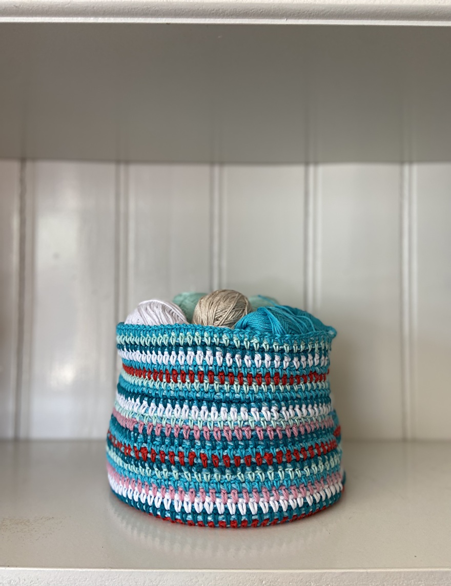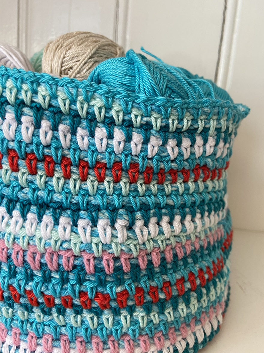 - Goed om te weten: draadjes afhechten is bijna niet nodig bij dit haakproject, want die 'verdwijnen' in de rand.